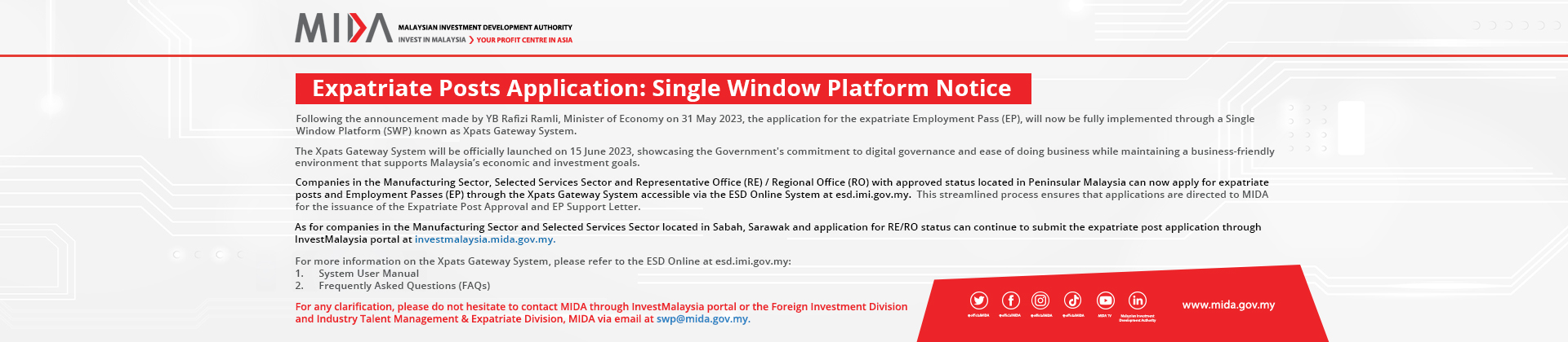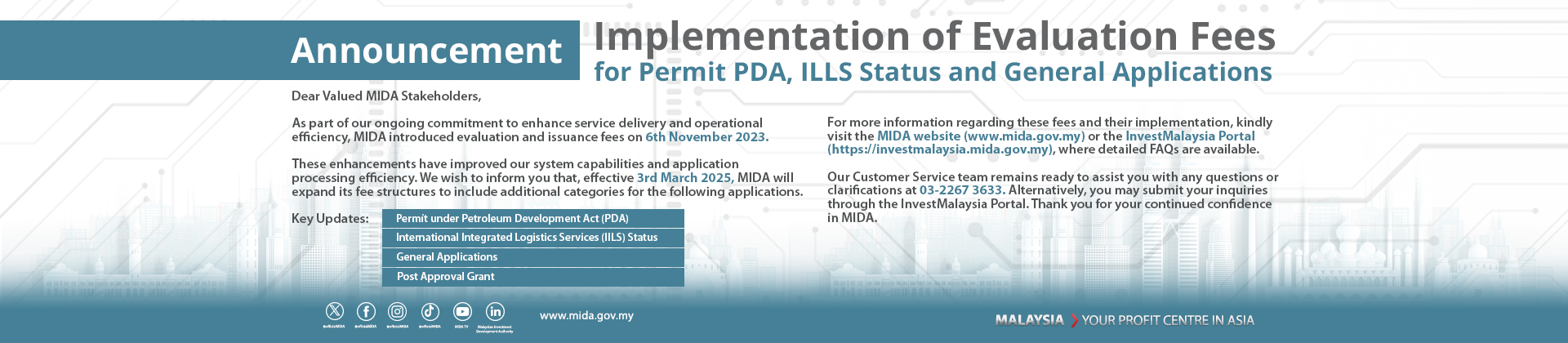 With more than 50 years of track record in building the nation, MIDA works hand-in-hand with investors to unlock investment opportunities and facilitate a seamless investment journey in Malaysia. MIDA handholds investors right from their initial enquiries until the realisation of their projects.